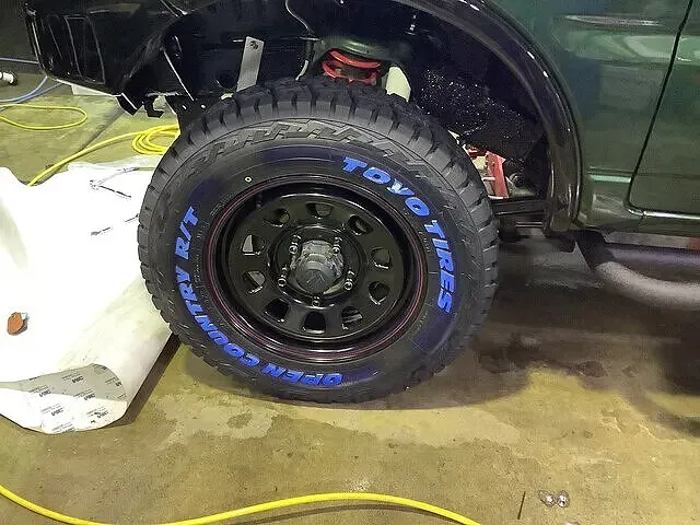 最近はやりのカラーホイールへ交換を行いました。色が変わるだけで車全体のイメージもがらりと変わりますね。ホイールは気分に合わせて手軽に変えられることが魅力です。