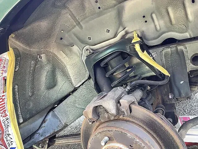 お客様からのご依頼で、車高を調整してカッコよくしました。もちろん、車検に通るための高さは確保しています。違法改造にならないよう細心の注意をはらっています。